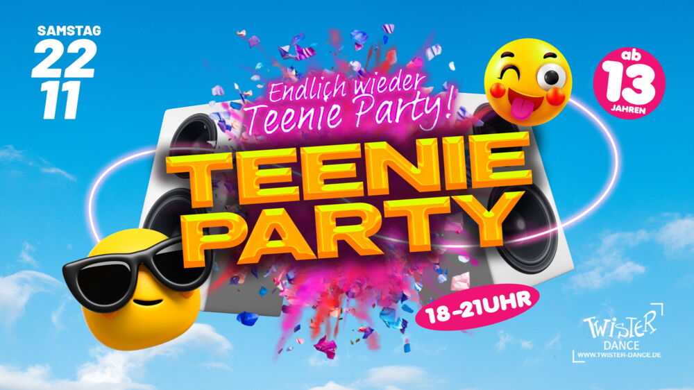 Hey Leute – seid ihr ready für den ultimativen Abend? 😍 Ab 18 Uhr öffnen wir die Tore zur TEENIE PARTY, und dann heißt’s: Vibes on, Alltag off! Eine Nacht voller Beats, Fun & unvergesslicher Momente wartet auf euch.